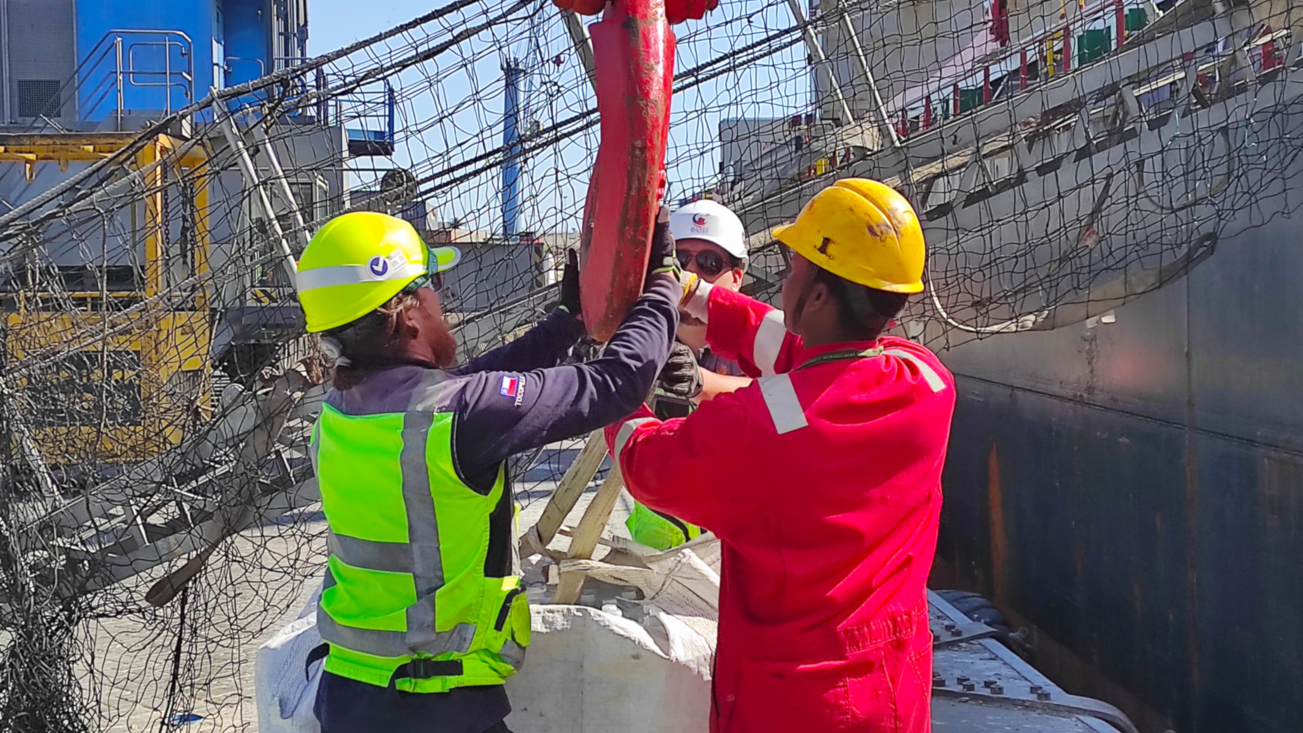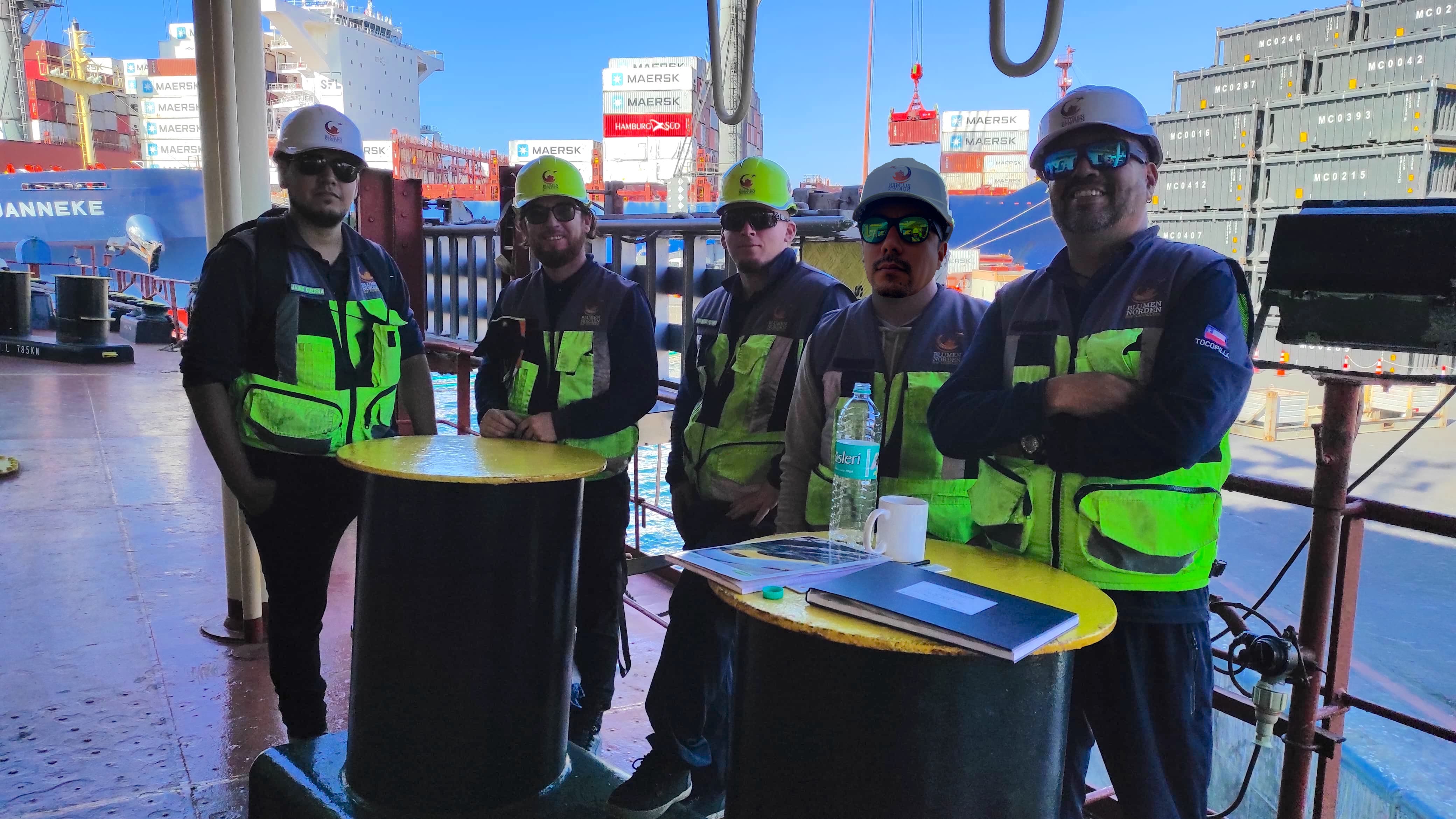 The BLUMEN NORDEN team is contacted and requested by the ship’s owners to provide support in cleaning of the cargo holds from hold No. 1 to No. 5. Once the vessel arrived at Tocopilla, the holds were rejected in the first holds inspection by terminal’s inspector.