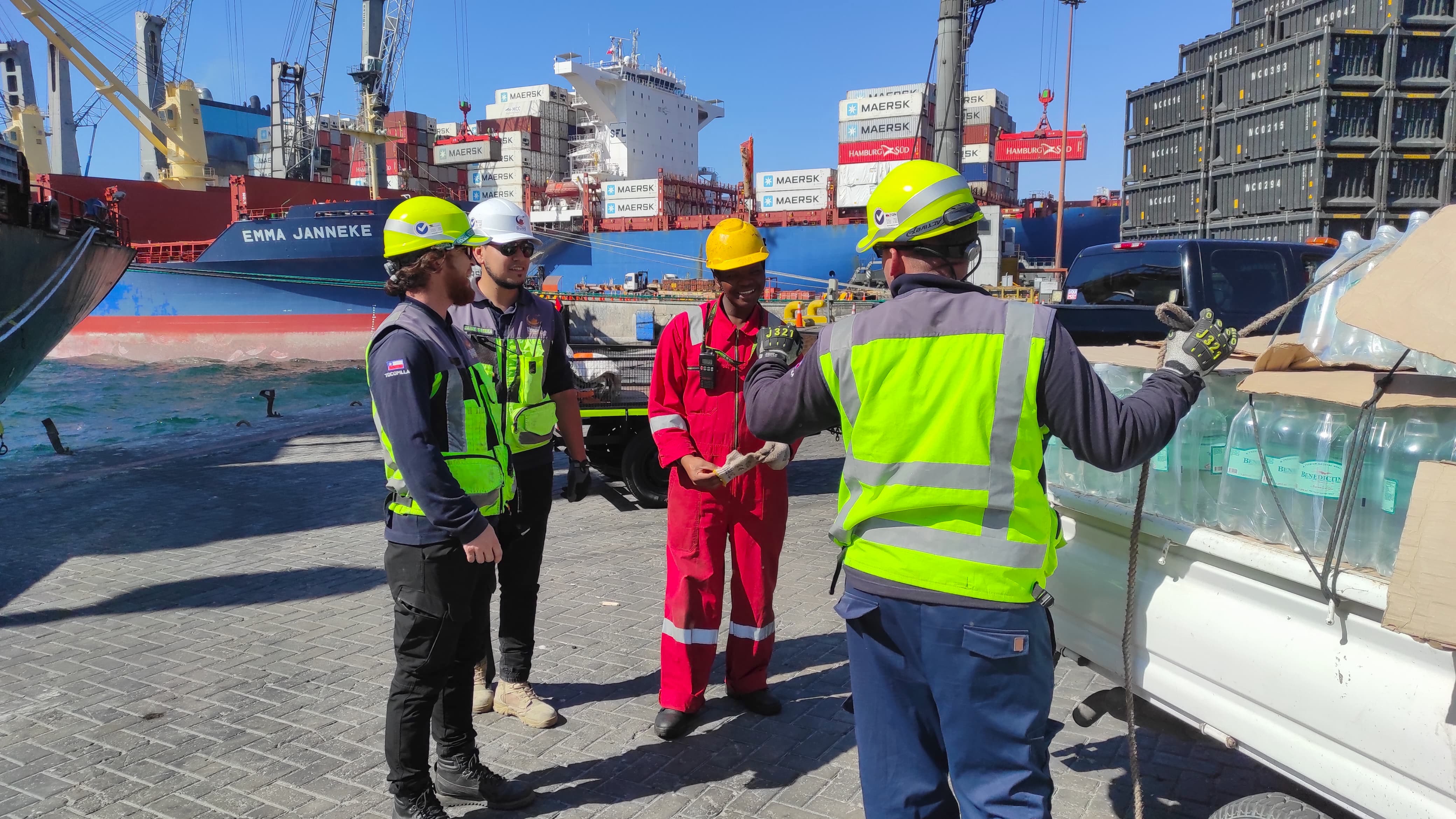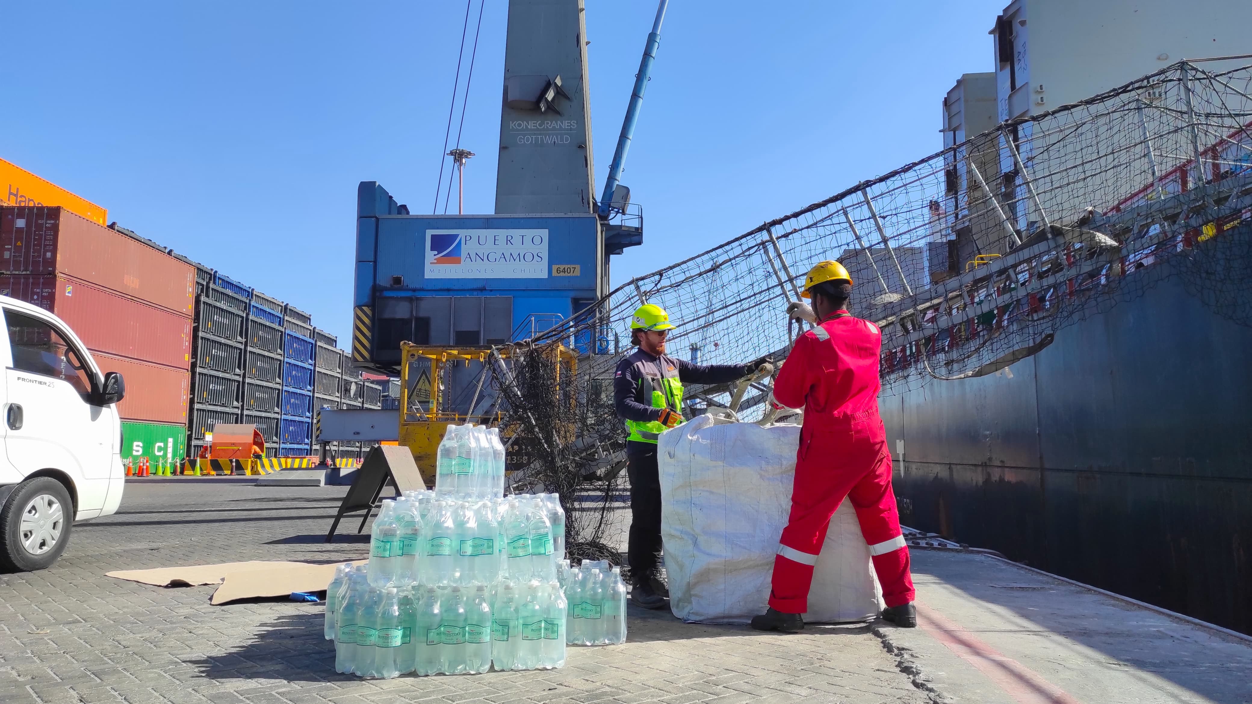 once again our team assisted in a very effective way the emergency supplies that the BBC ECHO vessel had. Our team moved to the port of Mejillones (Puerto Angamos) to be able to assist this boat that received our service very cordially. Our team as always demonstrating the commitment it acquires with our clients, arriving more than 1 hour before for customs procedures and almost 2 hours before vessel’s arrival for its mooring maneuver.